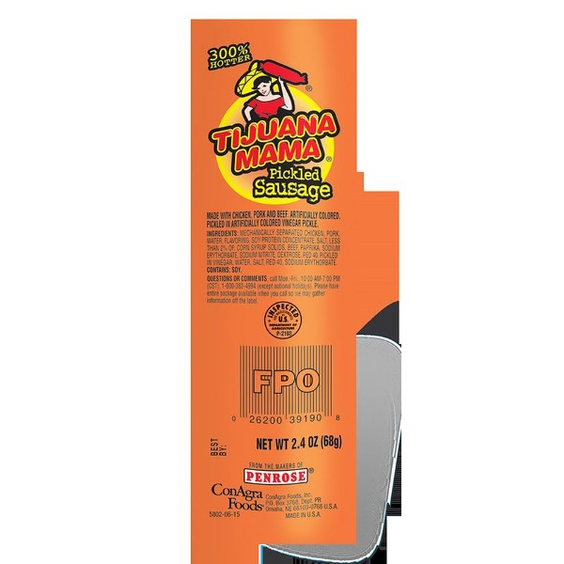 Tijuana Mama Pickled Sausage. You can read the reviews on these items to get a better idea of how people like them and many compare both to the Penrose pickled sausage. Big Mama Pickled Sausage 12ct individually wrapped.