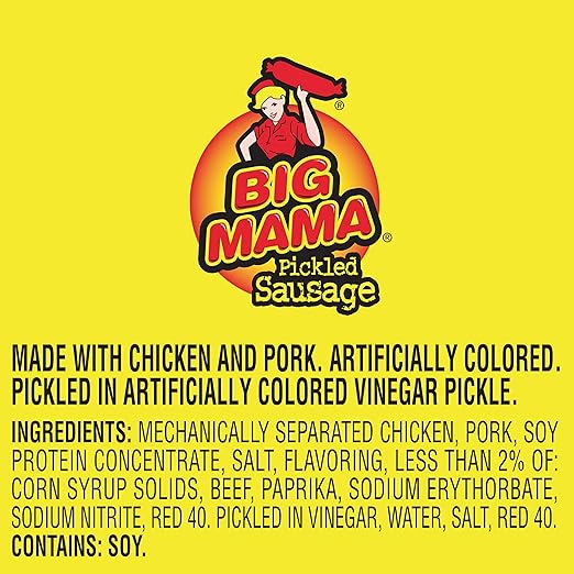 CORN SYRUP SOLIDS BEEF PAPRIKA SODIUM ERYTHORBATE SODIUM NITRITE RED 40 PICKLED IN VINEGAR WATER SALT RED 40 SODIUM ERYTHORBATE. These pickled hot sausages are excellent. Up to 11 cash back Penrose Big Mama Pickled Sausages are an easy on-the-go snack packed with big flavor.